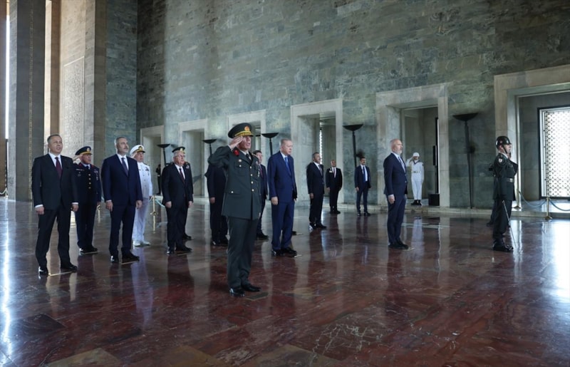 Cumhurbaşkanı Recep Tayyip Erdoğan başkanlığındaki Yüksek Askeri Şura (YAŞ) üyeleri Anıtkabir'i ziyaret etti. Burada Anıtkabir Özel Defteri’ni imzalayan Erdoğan, "Türkiye'yi yeniden şekillenen küresel sistemde bölgesinin kutup başı ülkesi haline getirme mücadelemiz sürecek" dedi.