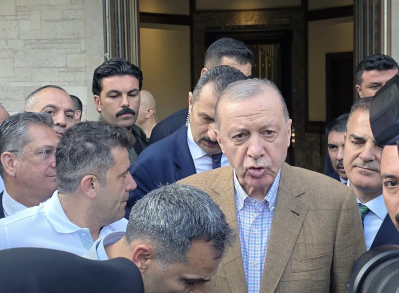 Erdoğan, bayram namazı sonrası cami avlusunda kısa bir süre vatandaşlarla bayramlaştı.