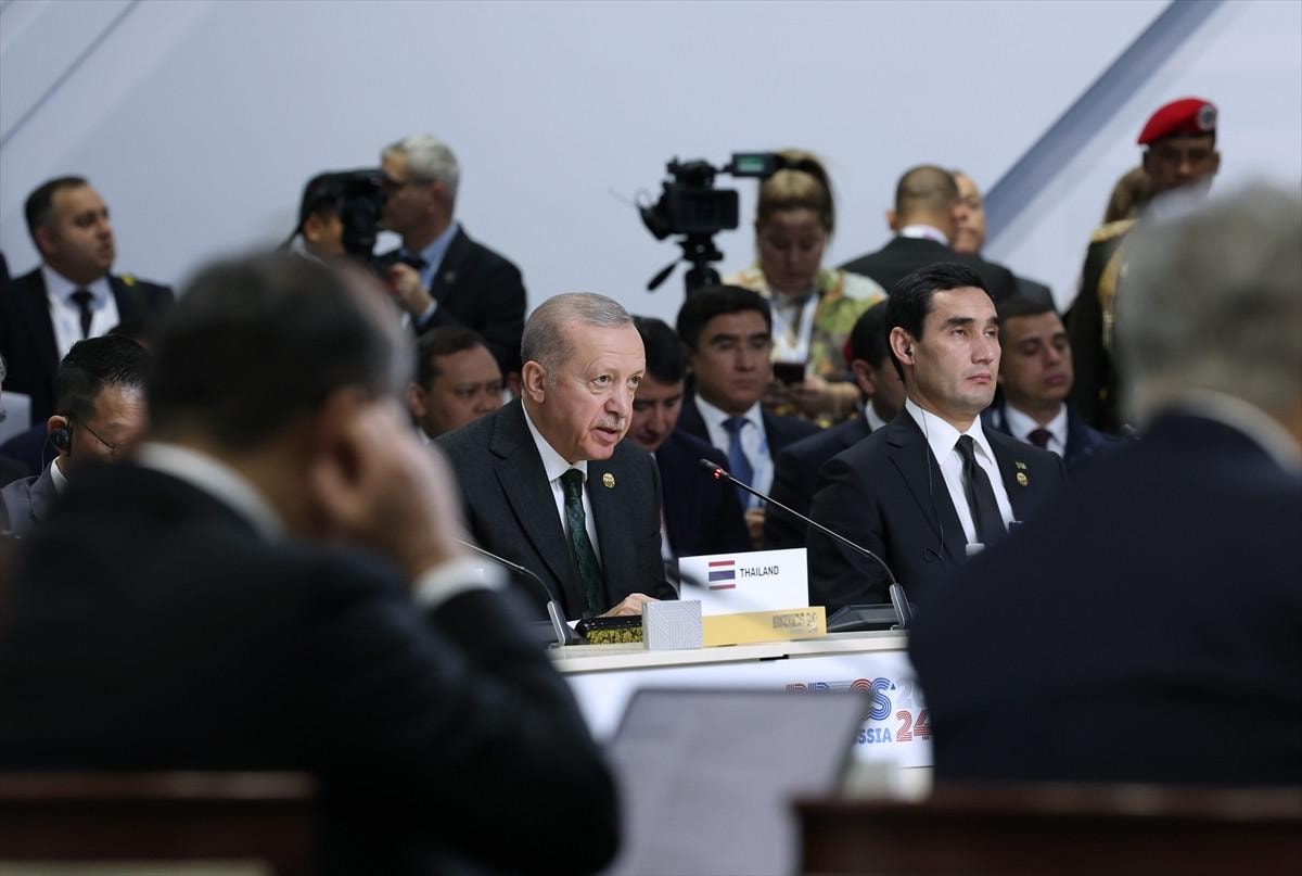 Türkiye olarak böylesi bir ortamda, "Daha adil bir dünya mümkündür." şiarıyla hareket ediyoruz. Çok taraflı platformlarda dostlarımızla bir araya gelmeye ve hepimizi ilgilendiren ortak sorunlara müşterek akılla çözüm bulmaya önem veriyoruz. BRICS'in küresel ticaretin gelişimine, ekonomik büyümeye ve sürdürülebilir kalkınma hedeflerine hizmet ederek daha adil bir küresel düzenin inşasına eşsiz katkılar sunduğuna inanıyoruz.