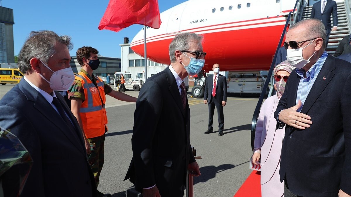 Erdoğan'ı buradaki Melsbroek Havalimanı'nda; Türkiye'nin NATO Daimi Temsilcisi Basat Öztürk, Avrupa Birliği Daimi Temsilcisi Mehmet Kemal Bozay, Brüksel Büyükelçisi Hasan Ulusoy, Türk Askeri Temsil Heyeti Başkanı Tümgeneral İsmail Üner, Brüksel Başkonsolosu Umut Deniz ve diğer yetkililer karşıladı.