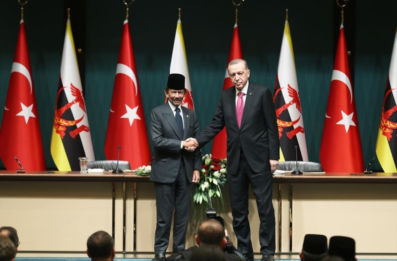 İki lider daha sonra ise, Cumhurbaşkanlığı Külliyesi'nde düzenlenen Brunei Darüsselam Sultanı Hacı Hassanal Bolkiah Mu'izzaddin Waddaulah ile anlaşmaların imza töreni ve ortak basın toplantısına katıldı.