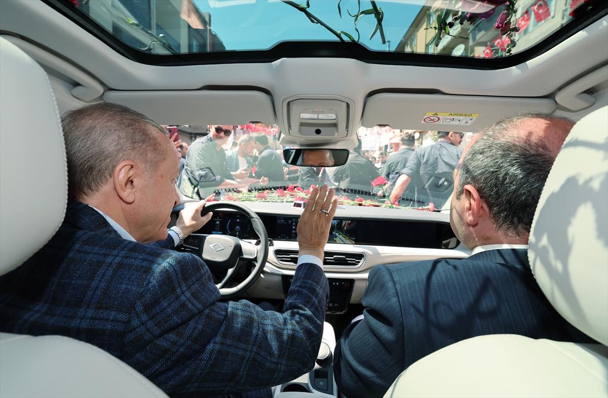 Vatandaşlar bu sırada Gemlik'te üretilen Togg marka makam aracının üzerine binlerce çiçek attı.
