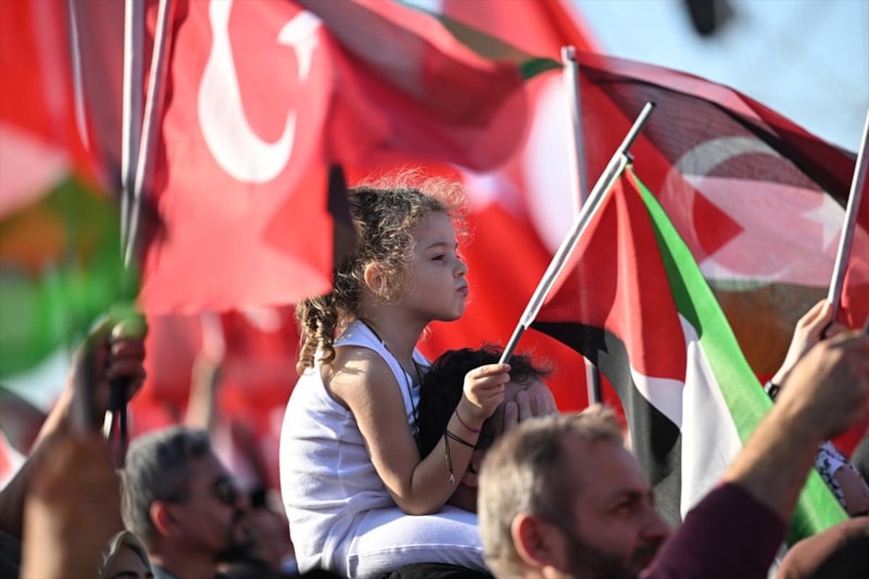 Gazze'deki Filistinli kardeşlerimize destek için bir araya geldiğimiz şu muhteşem toplantıdan bir daha asla yeni Gazzeler ortaya çıkmamasına izin vermeme azmi ile ayrılmalıyız.