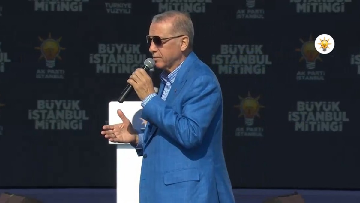 Cumhurbaşkanı, coşkulu kalabalığın karşısına seçim şarkısı "Duyanlara Duymayanlara" ile çıktı.