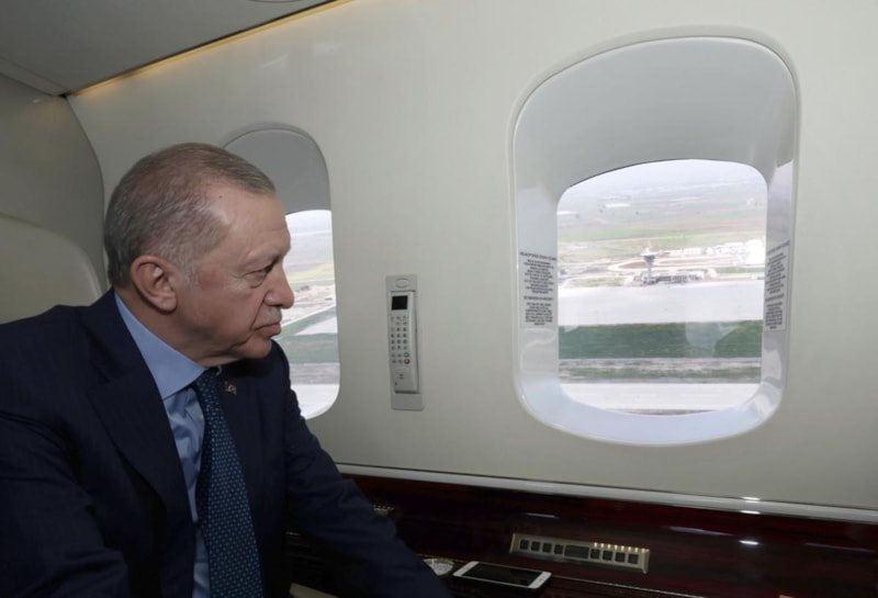 Cumhurbaşkanı Erdoğan, Mersin'de vatandaşlarla buluşmadan önce Çukurova Uluslararası Havalimanı'nı havadan inceledi.