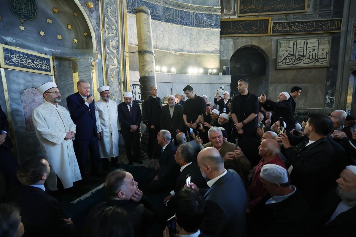 Cumhurbaşkanı Erdoğan, Ramazan ayının son cuma namazı için Kısıklı'daki konutundan çıkarak Ayasofya Camii'ne geldi.