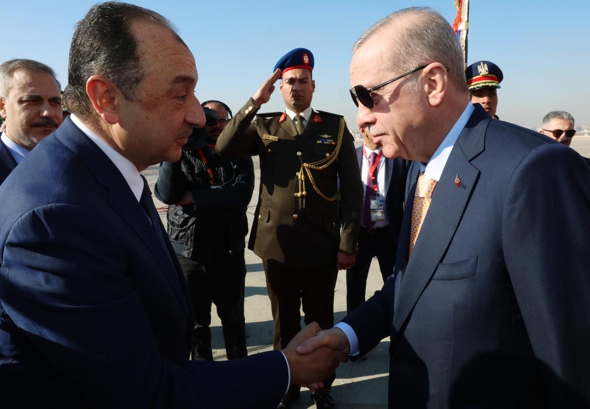 Geçtiğimiz saatlerde Kahire'ye inen Cumhurbaşkanı Erdoğan'ı, Kahire Uluslararası Havalimanı'nda, Dışişleri Bakanı Hakan Fidan, Türkiye'nin Kahire Büyükelçisi Salih Mutlu Şen ve Mısırlı yetkililer karşıladı.