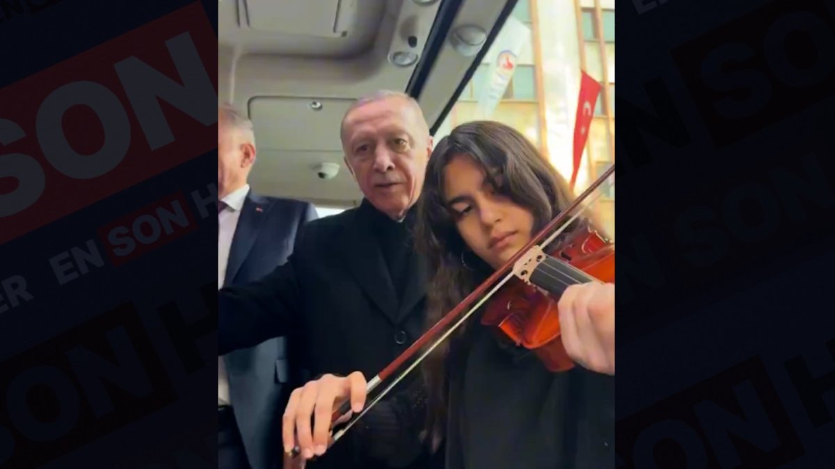 Konservatuar öğrencisi genç kız, seçim otobüsünde Cumhurbaşkanı Erdoğan'a keman çaldı.