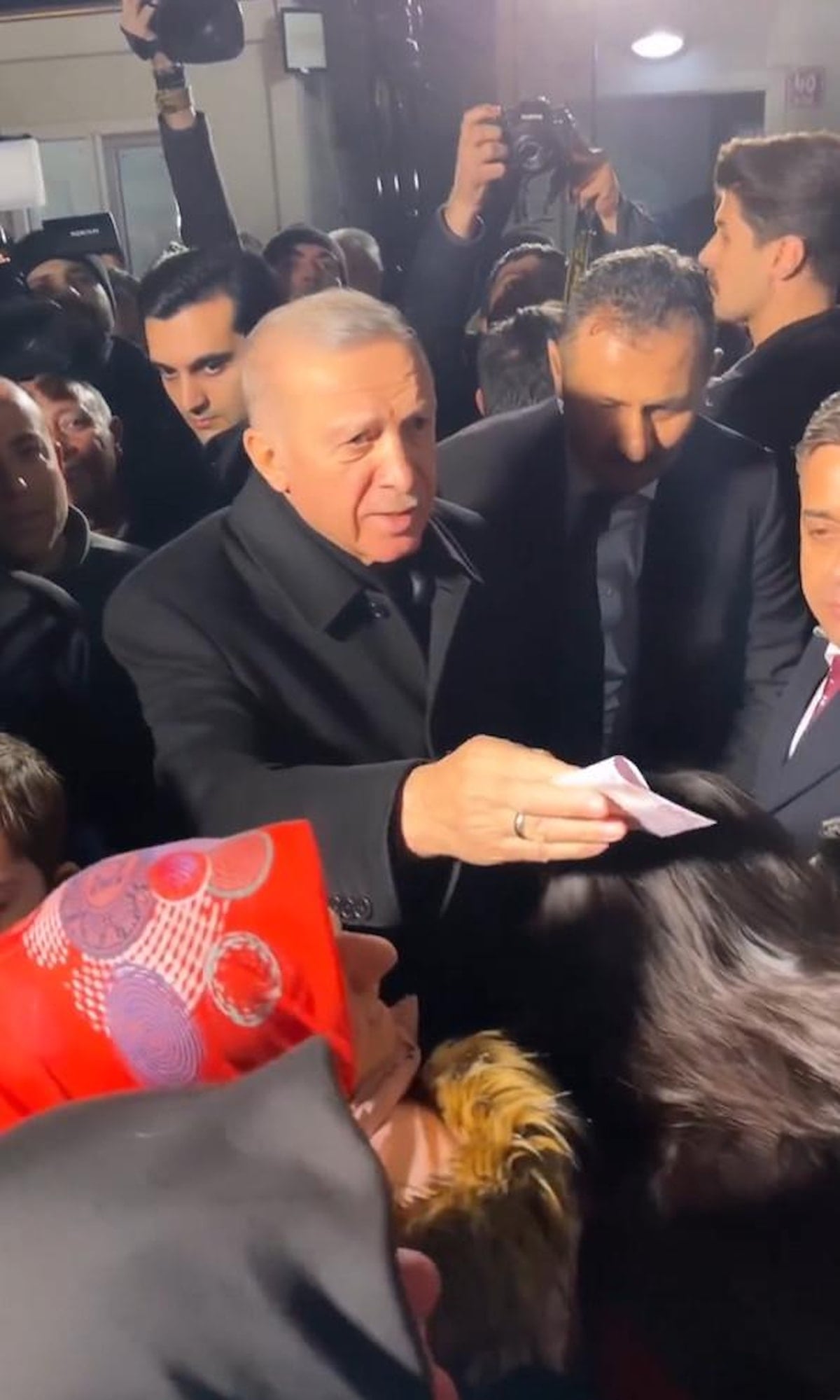 Bu sırada "Recep dede" diye seslenen küçük çocuğu fark eden Erdoğan, kendisine harçlık verdi.