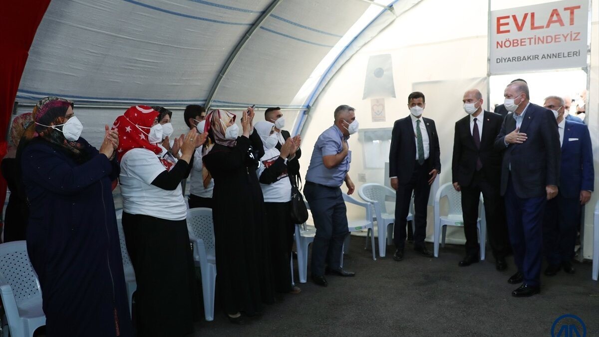 Cumhurbaşkanı Erdoğan, evlatları PKK tarafından dağa kaçırılan aileler ile HDP İl Başkanlığı binası önünde bulunan nöbet çadırında bir araya geldi.