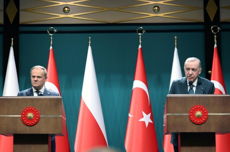 2024 yılında yaklaşık 12 milyar dolara ulaşan ticaret hacmimizi ve karşılıklı yatırımlarımızı daha da ileriye taşımakta kararlıyız. Yeni ticaret hacmi hedefi olarak 15 milyar doları tespit ettik. Polonya, yurtdışı müteahhitlik sektörümüz için önemli pazarlardan biri. Şirketlerimizin üstlendiği projelerin sayısının artmasından memnuniyet duyduğumuzu burada özellikle ifade etmek isterim. Türkiye ve Polonya, NATO'nun Avrupa'daki en büyük iki kara ordusuna komuta eden ittifakın doğu ve güney kanatlarında konumlanan iki kilit müttefiktir. Ülkelerimiz Avrupa'nın güvenlik mimarisinin geleceğinde vazgeçilmez yere sahiptir.