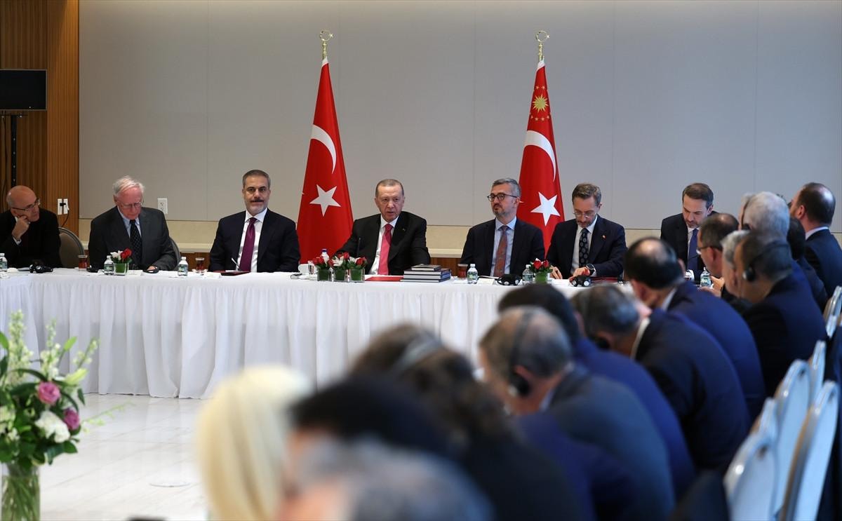 Birleşmiş Milletler (BM) 78. Genel Kurulu'na katılmak üzere bulunduğu New York'ta bulunan Cumhurbaşkanı Erdoğan, ABD'de faaliyet gösteren düşünce kuruluşu temsilcileriyle Türkevi'nde yuvarlak masa toplantısı yaptı.