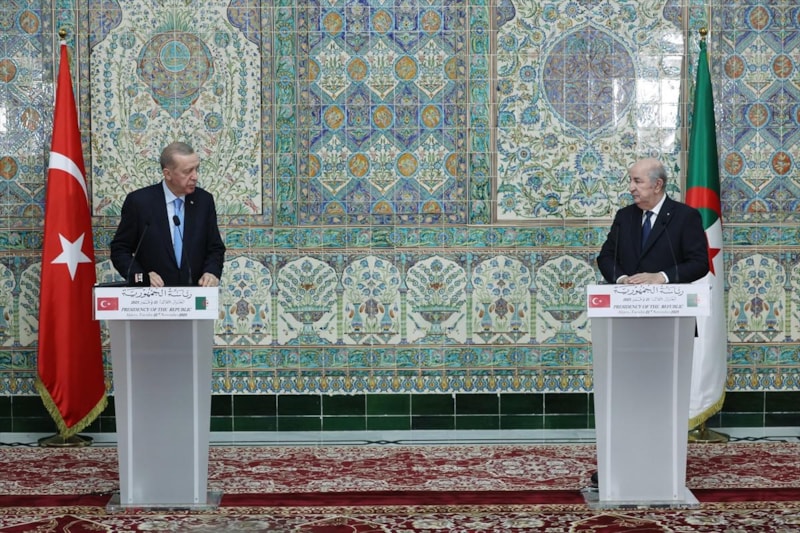 Türkiye ve Cezayir, asırlara sari dostluk ve kardeşlik bağlarına sahiptir. Geçen yıl 5,3 milyar dolarla rekor kıran ticaret hacmimizin bu sene sonunda 6 milyar doları yakalamasını bekliyoruz. Kardeşim Tebbun'la belirlediğimiz 10 milyar dolar ticaret hacmine de gayretlerimizi artırarak inşallah kısa zamanda ulaşacağız.