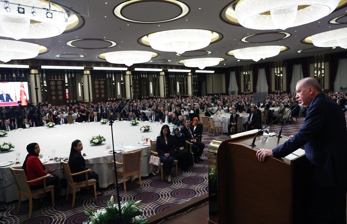 Cumhurbaşkanlığı Külliyemize, milletin evine, bu gazi mekana hepiniz hoş geldiniz, şeref verdiniz. Sizlerin vasıtasıyla gerek ülkemizde gerekse yurt dışında fedakarca görev yapan tüm öğretmenlerimize, eğitimcilerimize, hocalarımıza selamlarımı, sevgilerimi gönderiyorum. Göz bebekleri olan öğrencilerini ve yüksek mefkurelerini bizlere emanet ederek şehit düşen Şenay Aybüke Yalçın'ı, Necmettin Yılmaz'ı ve tüm kahraman öğretmenlerimizi rahmetle, minnetle yad ediyorum.