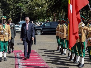 Cumhurbaşkanı Erdoğan’ı, Addis Ababa Milli Sarayı’ndaki törene gelişinde Desalegn, kapıda karşıladı. Erdoğan ve Desalegn'in tören alanındaki yerlerine geçmesinin ardından, iki ülke milli marşları çalındı.