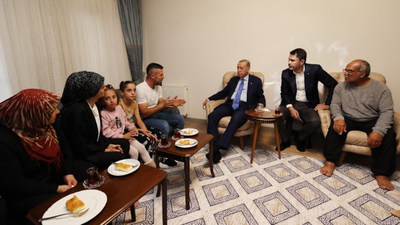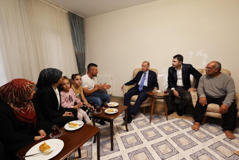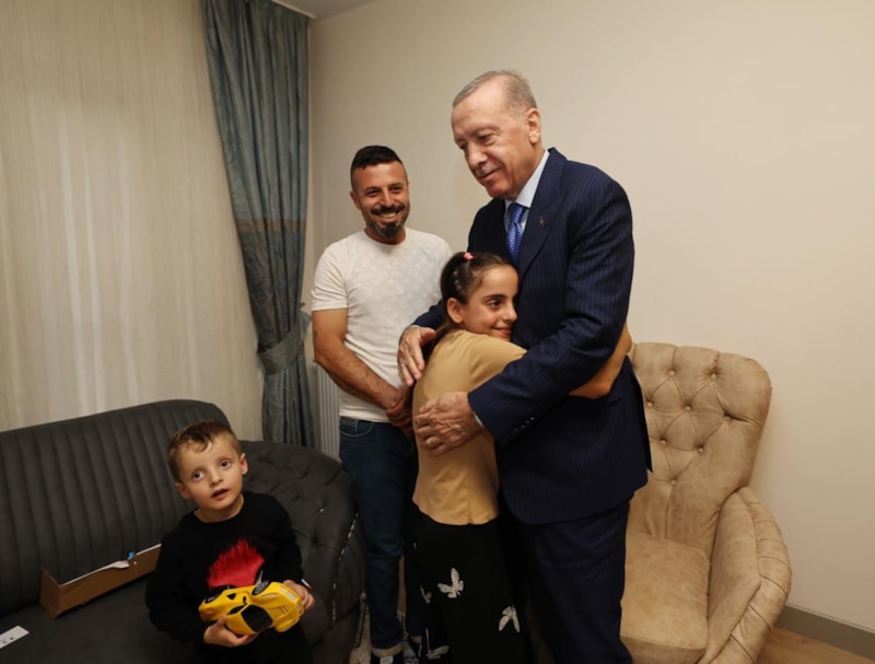 Anahtar teslim töreni sonrası Cumhurbaşkanı Erdoğan, depremde evleri yıkılan İpek ailesini yeni yuvasında ziyaret etti.