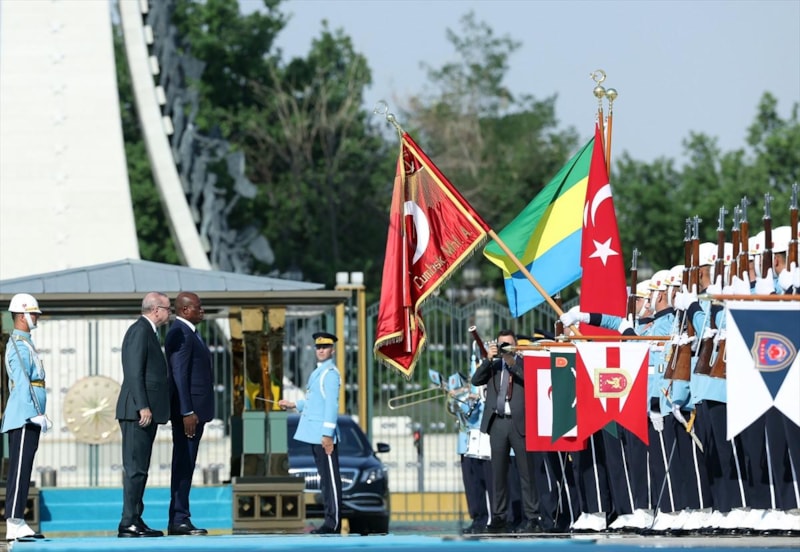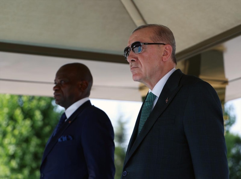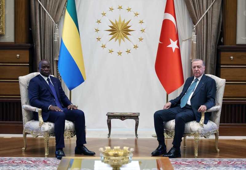 Cumhurbaşkanı Recep Tayyip Erdoğan, Gabon Cumhurbaşkanı Brice Clotaire Oligui Nguema'yı, Ankara'daki Cumhurbaşkanlığı Külliyesi'nde resmi törenle karşıladı. Törenin ardından Erdoğan ve Nguema, yapacakları ikili görüşme ardından basın toplantısı gerçekleştirecekler.