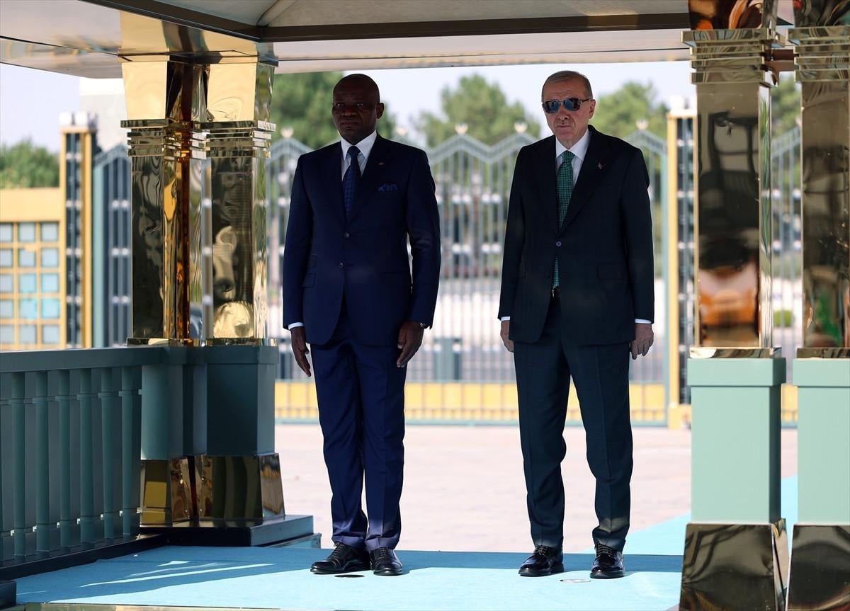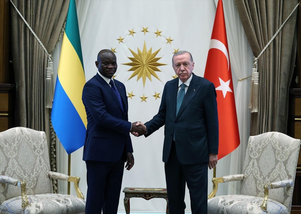 Cumhurbaşkanı Recep Tayyip Erdoğan, Türkiye'ye gelen Gabon Cumhurbaşkanı Brice Clotaire Oligui Nguema'yı Ankara'daki Cumhurbaşkanlığı Külliyesi'nin ana giriş kapısında karşıladı.