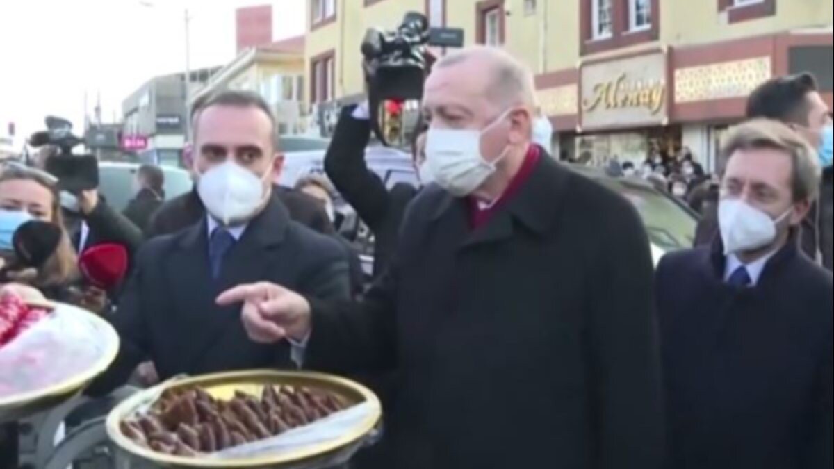 Erdoğan, ikram sırasında "Bu çok faydalı. Almam yok, size ciddi söylüyorum, bununla beslenene Covid, movid bulaşmaz. Bununla beslenin, Covid'den kurtulun." ifadesini kullandı.