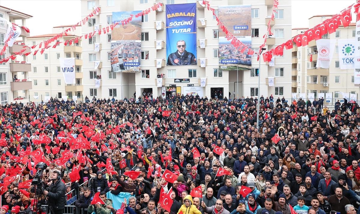 Burada şunu özellikle ifade etmek isterim: Biz dünyanın en büyük şantiyesine dönüşen deprem bölgesinde sadece konut yapmıyoruz. Biz aynı zamanda okulu ile, sağlık merkeziyle, çarşısıyla, pazarıyla, yeşil alanıyla yepyeni yaşam alanları inşa ediyoruz. Sadece depremde yıkılan yerlerin değil, bölgedeki şehirlerimizin tamamının altyapısını da yeniliyoruz.