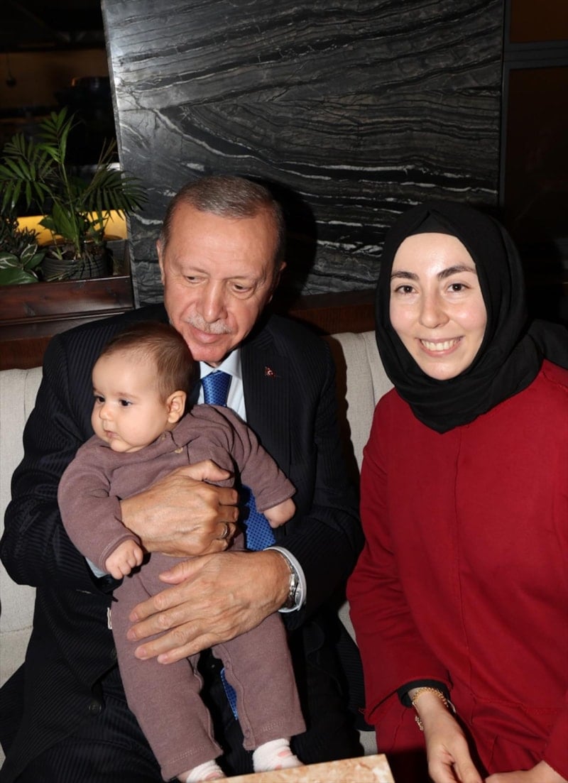 Kafe çalışanlarıyla sohbet eden, vatandaşlarla tek tek fotoğraf çektiren Cumhurbaşkanı Erdoğan, bebekleri de kucağına alarak sevdi.