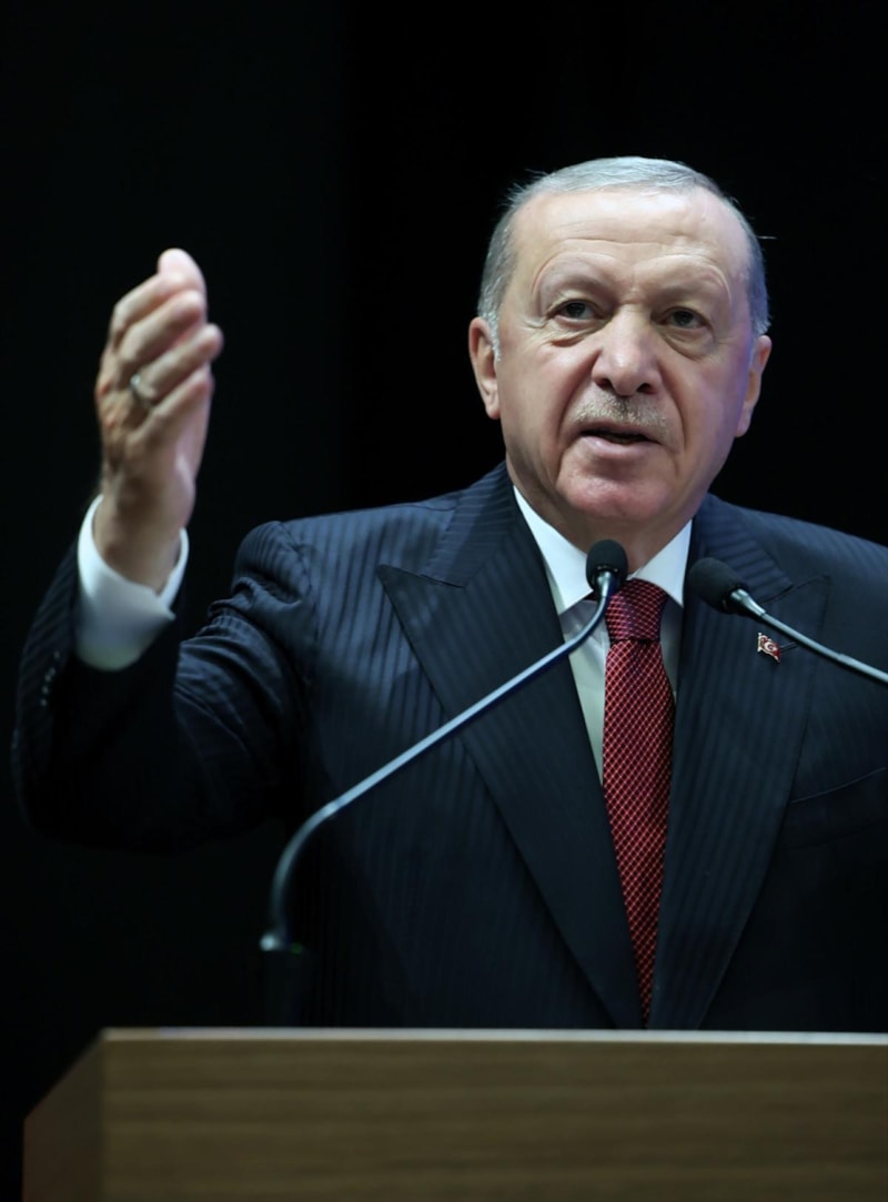 AK Parti Kongre Merkezi'nde düzenlenen toplantıda gündeme dair önemli açıklamalarda bulunan Cumhurbaşkanı Erdoğan Gazze'ye doğru yola çıkan Küresel Sumud Filosu'na yönelik saldırıları lanetledi.