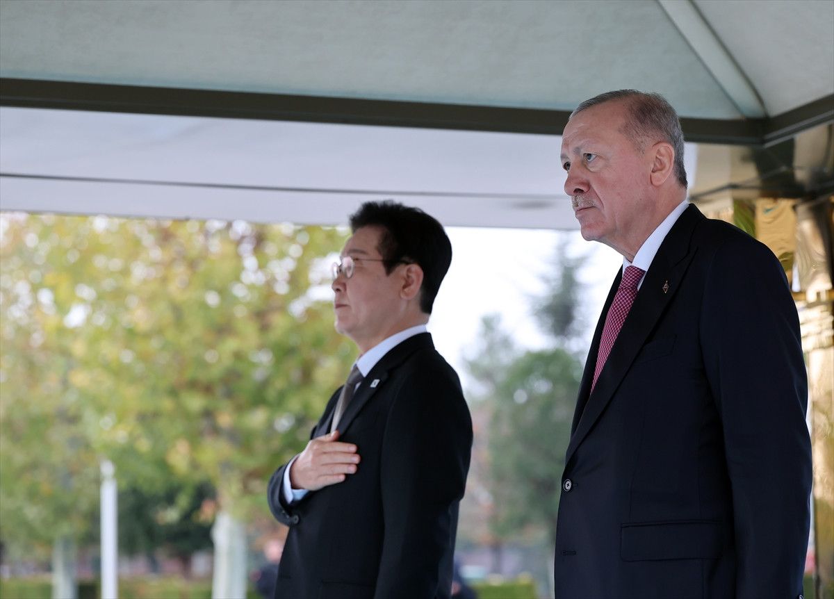 Cumhurbaşkanı Erdoğan bu kapsamda, Türkiye'yi ziyaret eden Güney Kore Cumhuriyeti Cumhurbaşkanı Sayın Lee Jae-myung'u resmi törenle karşıladı.