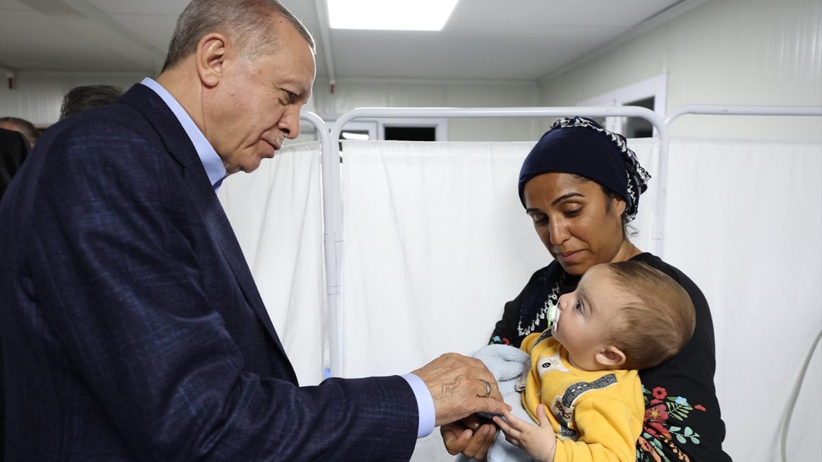 Defne Sahra Hastanesi'ni ziyaret eden Erdoğan, hastanede bulunan vatandaşlara moral ziyaretinde bulundu.