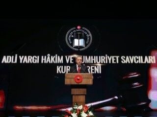 Vesayet güçlerinin, bir dönem FETÖ ihanet çetesinin ve diğer terör örgütlerinin ağır saldırısına maruz kaldı. Zihinlerini ve kalplerini sapkın inançlara kiralamış olanların adalet dağıtması mümkün değildir. Adalet yolundan sapanların akıbeti yine hukuk içinde hesap vermektir. Türkiye'nin hukuk devleti niteliği başka bir yola ve yönteme izin vermez. Bugün göreve başlayan siz kıymetli hakim ve savcı kardeşlerim, adaletten taviz vermeden çalışacağına inanıyorum.