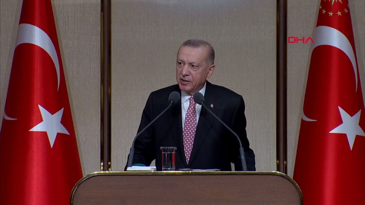 Müjdeyi açıklayacağını ifade eden Cumhurbaşkanı Erdoğan, "İhracata dönük yatırımlar ve dözviz kazandırıcı yatırım faaliyetleriyle ilgili müjdeyi sizlerle paylaşmak istiyorum. İhracata dönük yatırımlara yıllık yüzde 9'a varan faiz oranıyla TL cinsinden uzun vadeli finansman imkanı getiriyoruz." dedi.