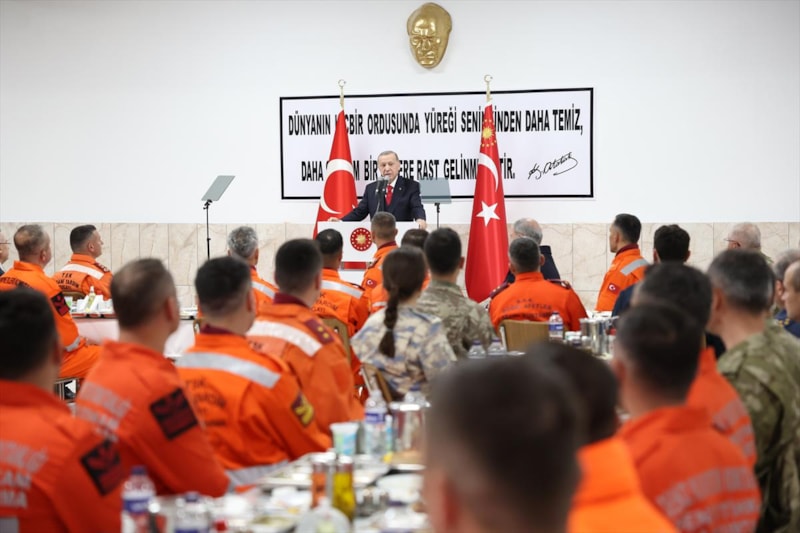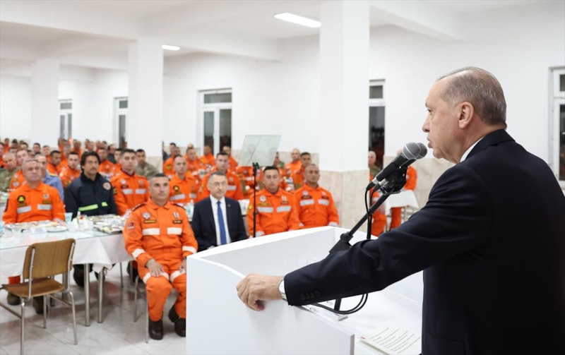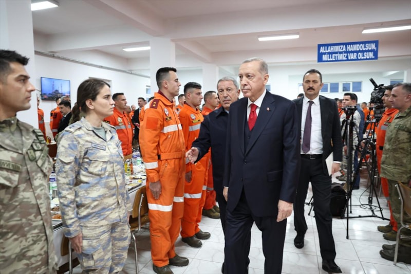 Tüm askerlerimize şahsım, ailem ve milletim adına şükranlarımızı sunuyorum. Bu vesileyle bir kez daha depremlerde hayatını kaybeden vatandaşlarımıza ve askerlerimize Allah'tan rahmet diliyorum.
