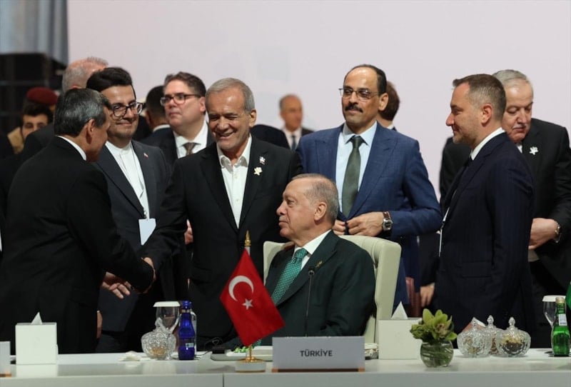 Son saldırı İsrail'in haydutluğunu farklı bir boyuta taşımıştır. Bugünkü zirveyi o nedenle çok anlamlı buluyorum. Bugün alacağımız kararların dünya kamuoyuna yazılı olarak ilan edilmesini niyet ediyorum. Dost ve kardeş müttefik ülkemiz Katar'ın her daim yanında olduğumuzu vurguluyorum. Netanyahu hükümetinin esas amacının bir yandan Filistin'deki katliamı sürdürürken bölgeyi istikrarsızlığa sürüklemek olduğu şüphe götürmez bir gerçektir. Karşımızda bir terör zihniyeti var. Bu zihniyet işlediği suçların cezasız kalmasıyla ayakta kalabilmektedir. Soykırımcı İsrail durdurulmalı. İsrail yaptırım olmadan durmayacak.