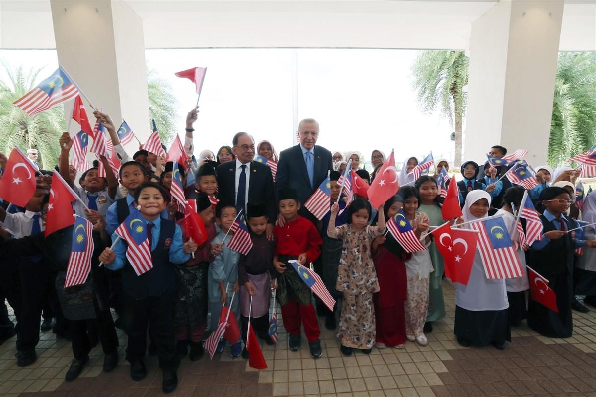 Cumhurbaşkanı Erdoğan, daha sonra TOGG teslim törenine katılan, ellerinde Malezya ve Türk bayrakları bulunan çocuklarla ilgilendi, onlarla fotoğraf çektirdi.