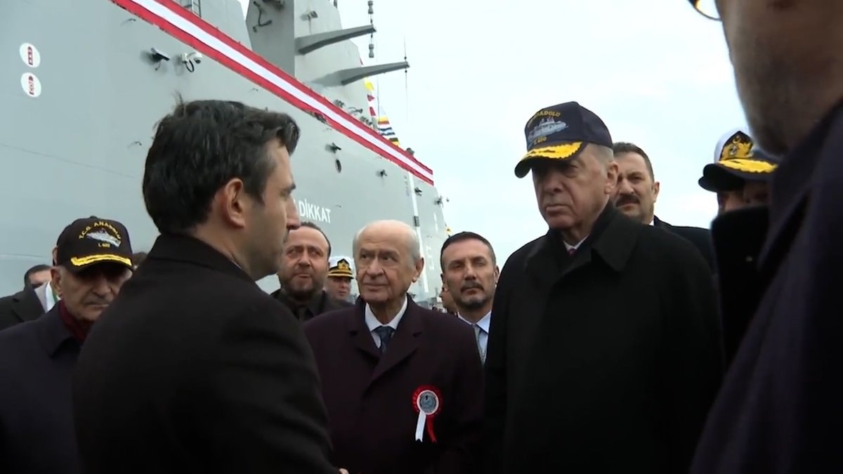 Törenin ardından gemiyi gezen Cumhurbaşkanı Erdoğan ve diğer liderlerle Selçuk Bayraktar arasında dikkat çeken bir diyalog yaşandı.