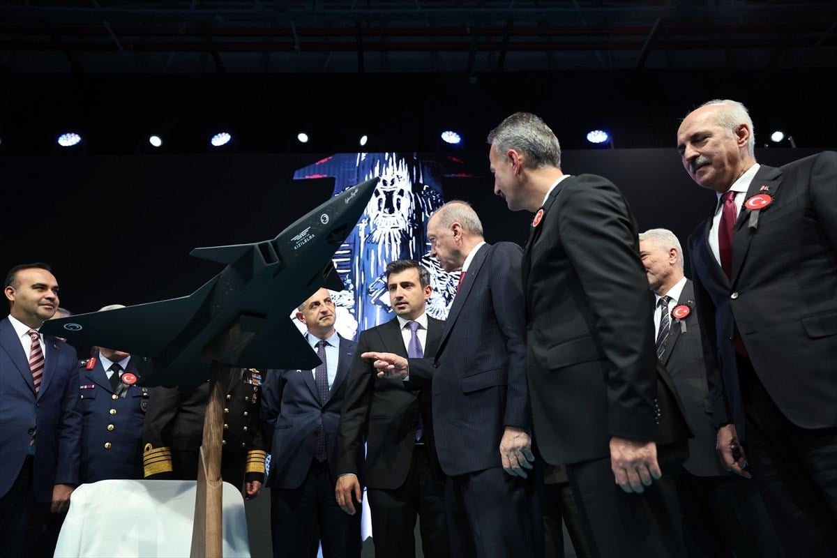 O anlarda Cumhurbaşkanı Erdoğan ve Baykar Yönetim Kurulu Başkanı Selçuk Bayraktar arasında, sahnede bulunan Kızılelma maketiyle ilgili bir konuşma geçti.