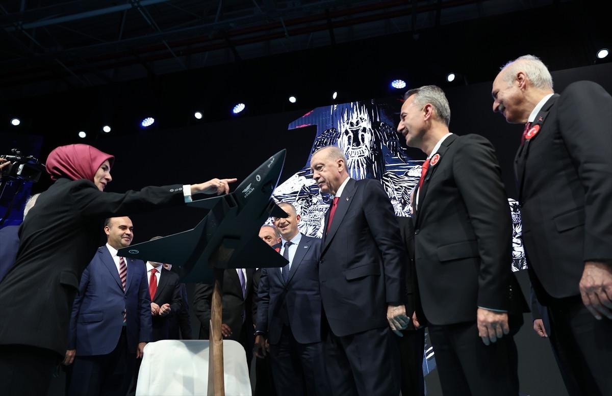 Cumhurbaşkanı Erdoğan daha sonra TUSAŞ standını ziyaret ederek fotoğraf çekildi.
