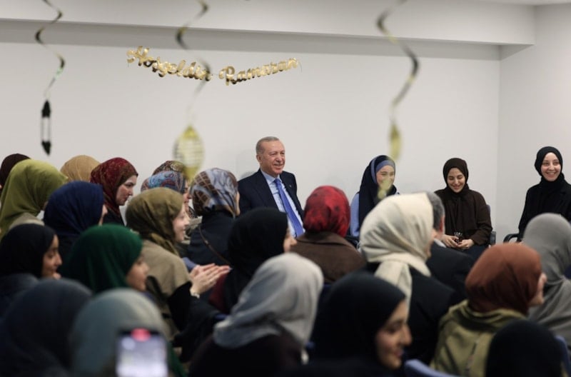 Cumhurbaşkanı Recep Tayyip Erdoğan, Marmara Üniversitesi İlahiyat Fakültesi Vakfı Ayşe Eren Yükseköğrenim Kız Öğrenci Yurdu'nu ziyaret ederek öğrencilerle sohbet etti.