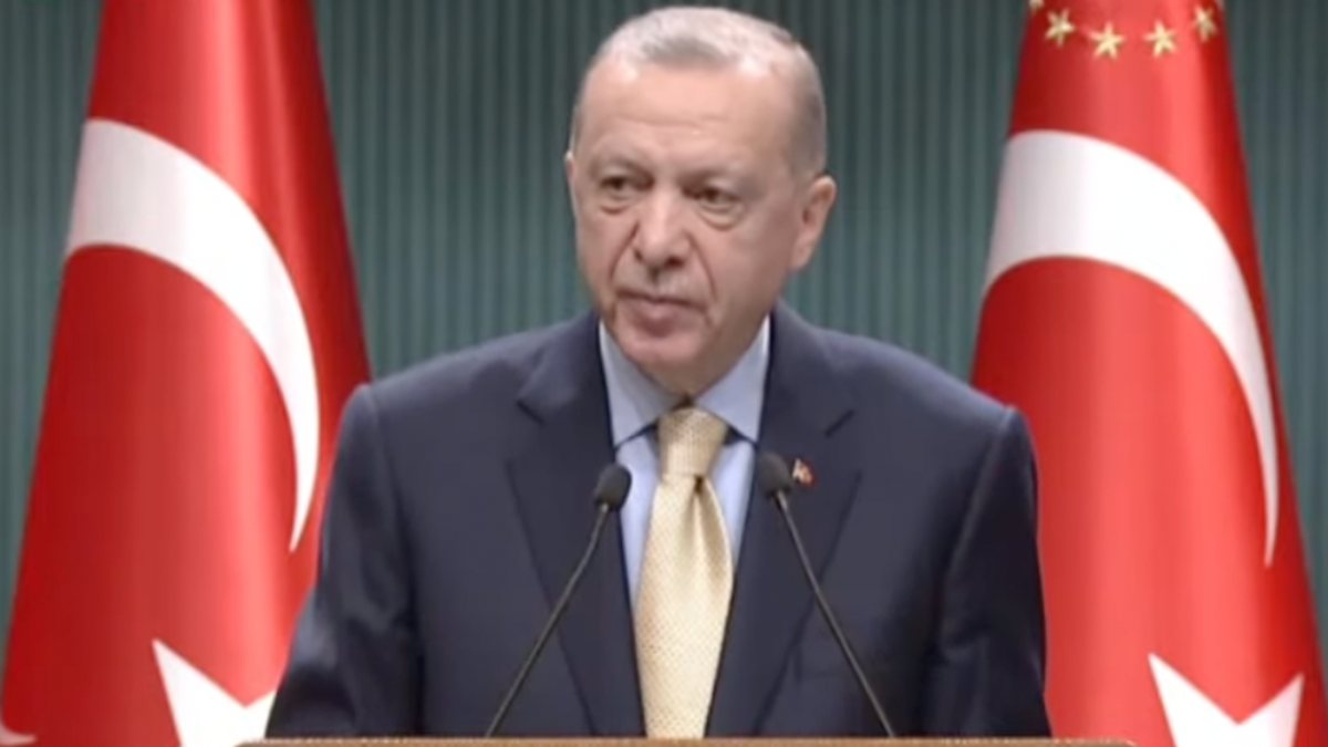 Cumhurbaşkanı Recep Tayyip Erdoğan, Cumhurbaşkanlığı Külliyesi'nde yapılan kabine toplantısı sonrası kameraların karşısına geçti.