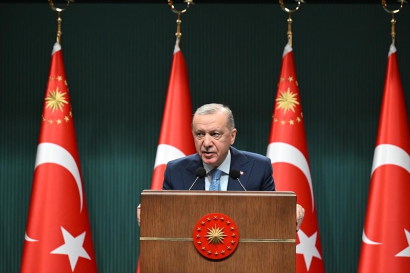 Toplantı sona ererken Cumhurbaşkanı Recep Tayyip Erdoğan, kameraların karşısına geçti.