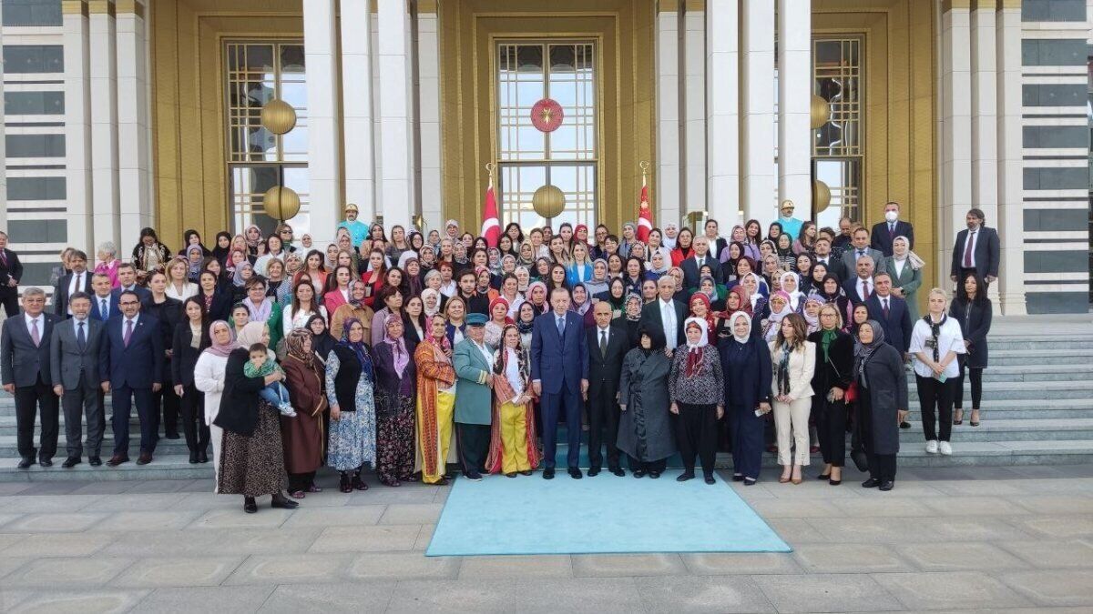 Cumhurbaşkanı Recep Tayyip Erdoğan, Dünya Çiftçi Kadınlar Günü dolayısı ile 81 ilden gelen kadın çiftçilerle Cumhurbaşkanı Külliyesi'nde bir araya geldi.