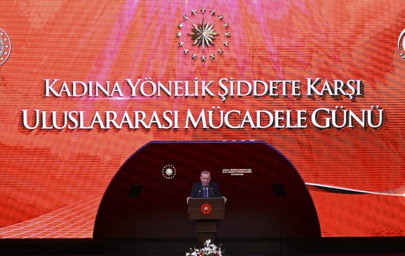 Kadına Yönelik Şiddetle Mücadele Günü Programı'nda, şiddetin kadına değil insanlığa karşı bi ihanet olduğunu ifade eden Cumhurbaşkanı Erdoğan, Türkiye'nin kadına şiddetle mücadelede Avrupa ülkelerinden çok daha ileride olduğunu belirtti.