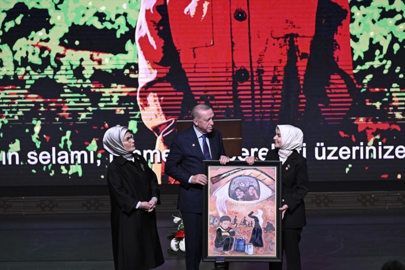 Konuşmasında Gazze'deki zulme de yer veren Erdoğan, yaşanan soykırımda hayatını kaybeden 70 bin insanın çoğunun kadın ve çocuktan oluştuğunu ifade etti.