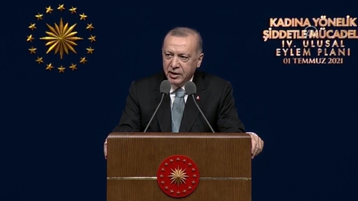 Bu sözleşmeden çekilmenin bazı çevreler tarafından geriye gidiş olarak yansıtıldığını belirten Cumhurbaşkanı Erdoğan'ın konuşması şöyle: