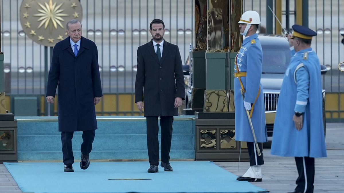 Karadağ Cumhurbaşkanı Jakov Milatoviç, Cumhurbaşkanı Külliyesi'nde resmi törenle karşılandı.