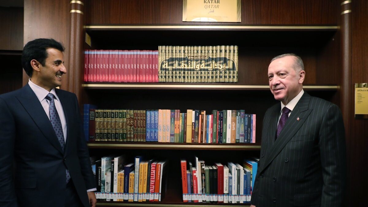 Cumhurbaşkanı Recep Tayyip Erdoğan, Türkiye-Katar Yüksek Stratejik Komite 6. Toplantısı'na katılmak üzere Türkiye'ye gelen Katar Emiri Al Sani'ye, anlaşmaların imza töreninin ardından Cumhurbaşkanlığı Millet Kütüphanesi'ni gezdirdi.