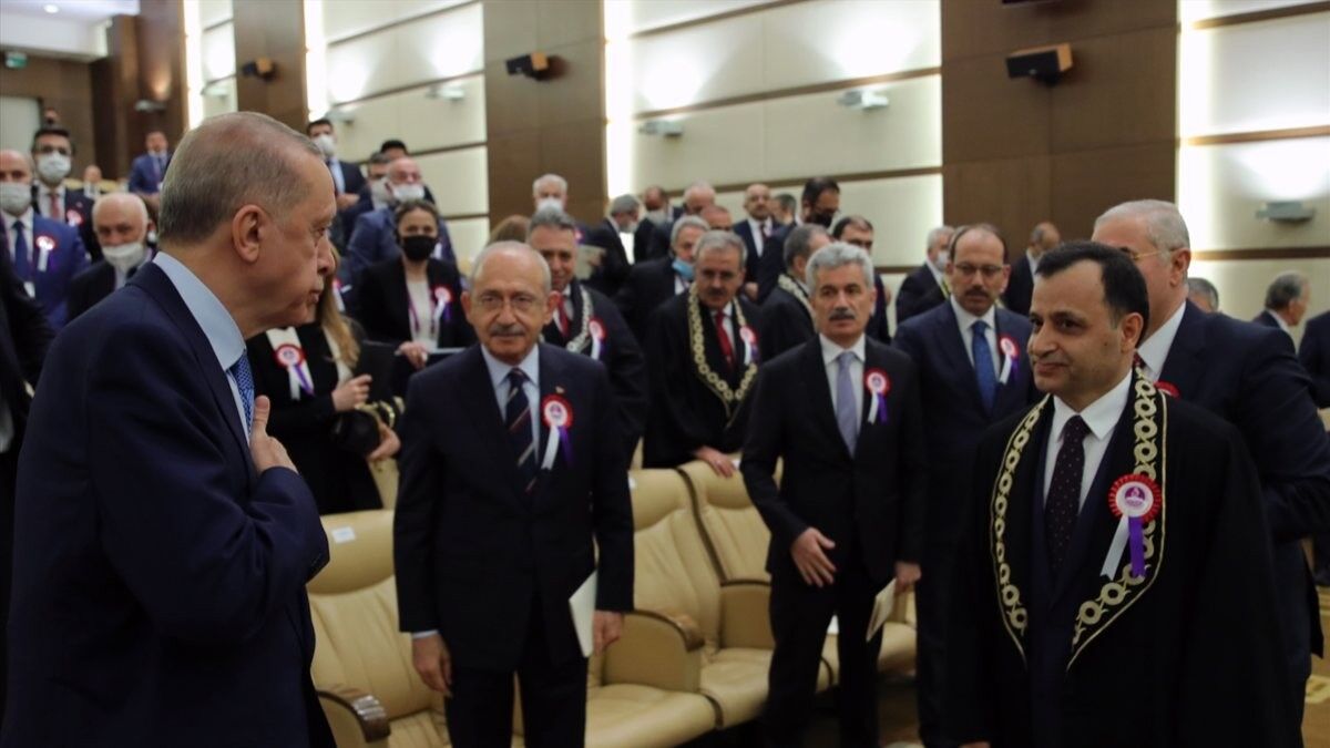 Cumhurbaşkanı Erdoğan ve Kemal Kılıçdaroğlu, daha sonra Anayasa Mahkemesi Başkanı Zühtü Arslan'ın konuşmasını dinledi.