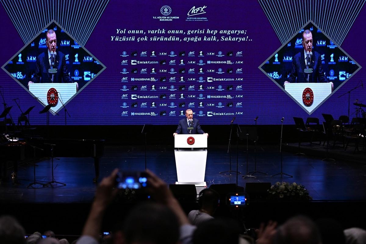 Cumhurbaşkanı Recep Tayyip Erdoğan, Atatürk Kültür Merkezi'nde "40 Yıl, 40 Eser" etkinliği kapsamında "Bir Şiir Bir Hayat / Sakarya Türküsü Dijital Sergisi"nin açılışında konuştu.