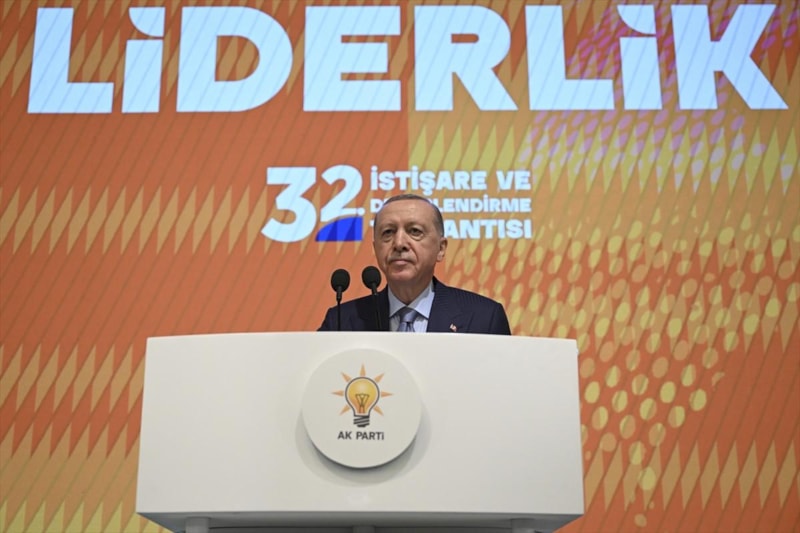 AK Parti 32. İstişare ve Değerlendirme Toplantısı'nın kapanış konuşmasını yaparak AK Parti, MHP ve DEM Parti'nin, 'Terörsüz Türkiye' sürecinde, barış için el ele verdiğini belirten Cumhurbaşkanı Recep Tayyip Erdoğan, "Büyük ve güçlü Türkiye'yi ancak böyle kurabiliriz" ifadelerini kullandı.