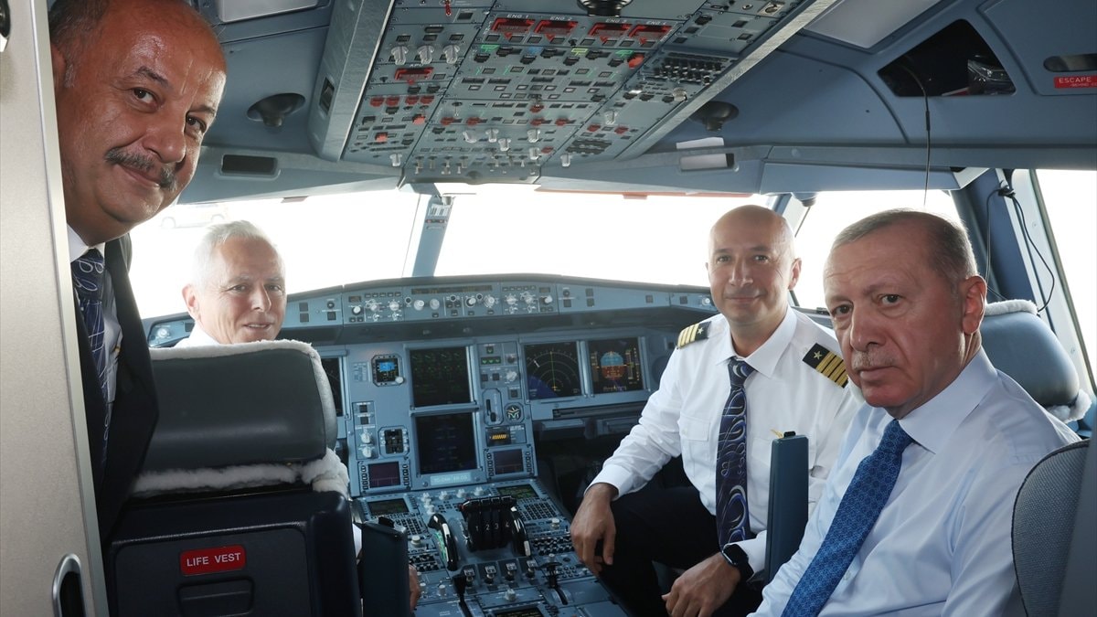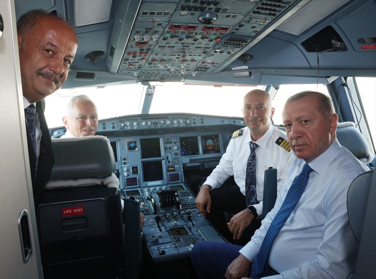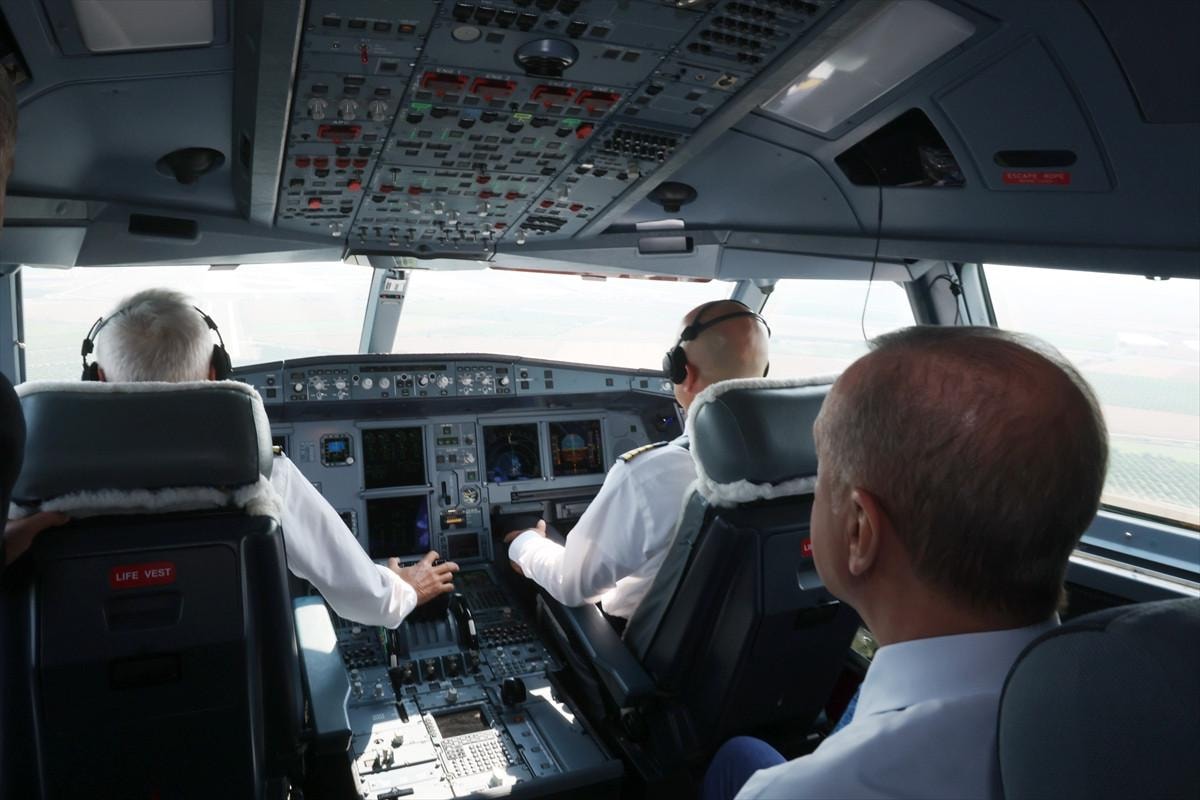 İniş sırasında kokpite geçen Cumhurbaşkanı Erdoğan, Türkiye'nin 58. havalimanı olma özelliği taşıyan yapıyı önce havadan inceledi.
