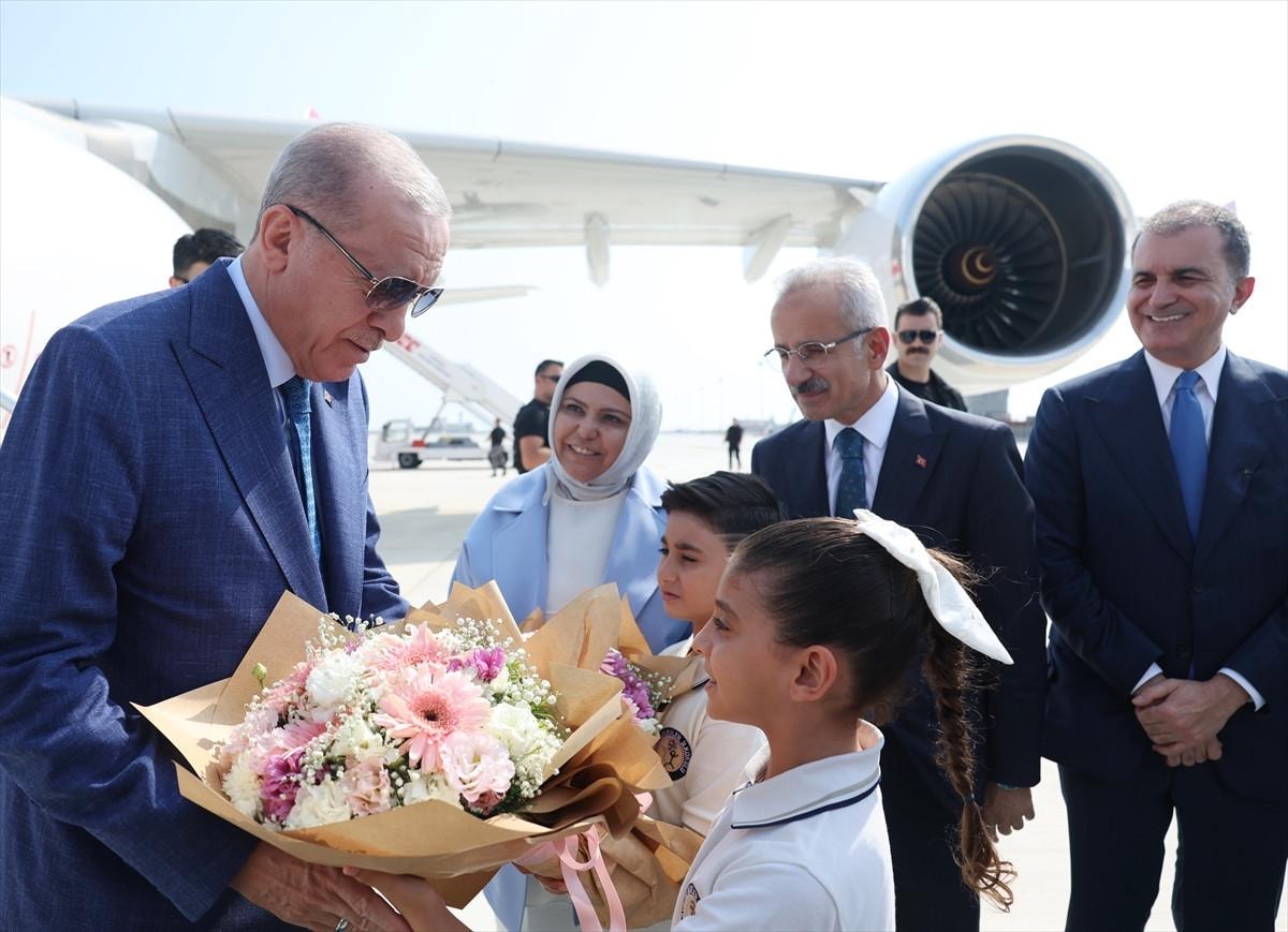Piste teker koyan uçaktan inerken çiçeklerle karşılanan Cumhurbaşkanı, daha sonra Ulaştırma ve Altyapı Bakanı Abdulkadir Uraloğlu eşliğinde iç mekanları gezdi.
